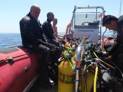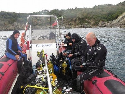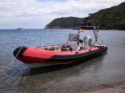 Our own boat, the Conqueror, is a Valiant DR750 fully equipped for diving and powered by a 225 bhp 4 stroke engine to take you smoothly to any of the dive sites of the Cap de Creus within 30 minutes motoring. She is fully coded and configured for a maximum of 12 divers but usually we prefer to limit ourselves to 8 divers and take plenty of tanks for multiple dives.